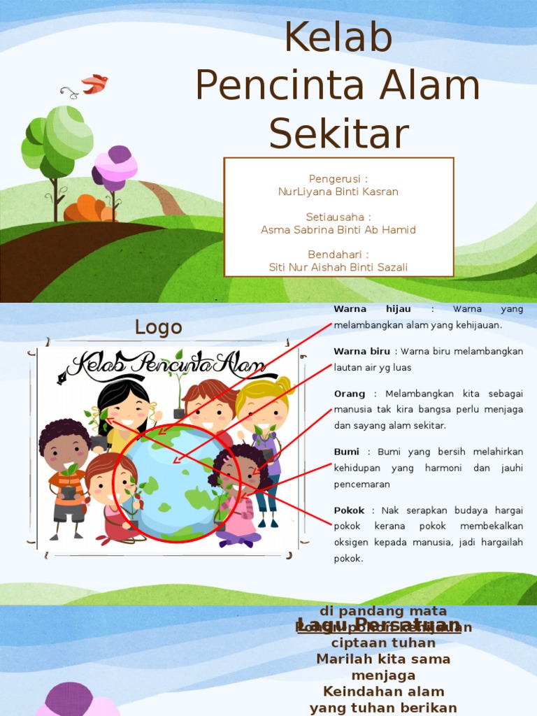 Contoh logo kelab alam sekitar cute766. Warna utama logo adalah warna hijau. Kelab pencinta alam sekitar pals merupakan salah satu program.